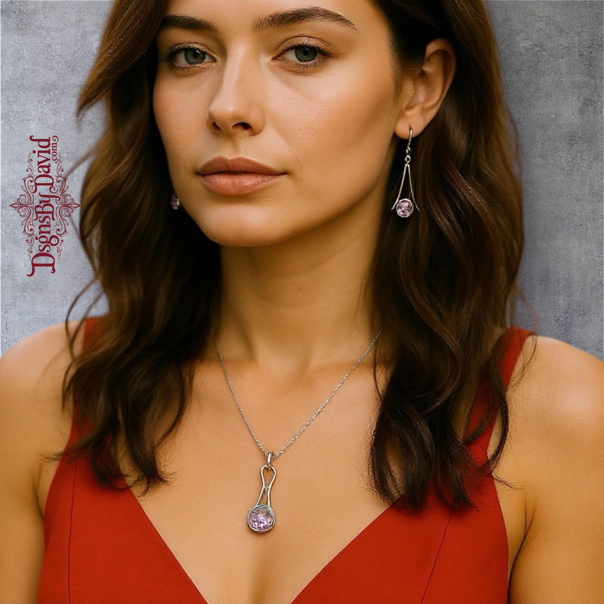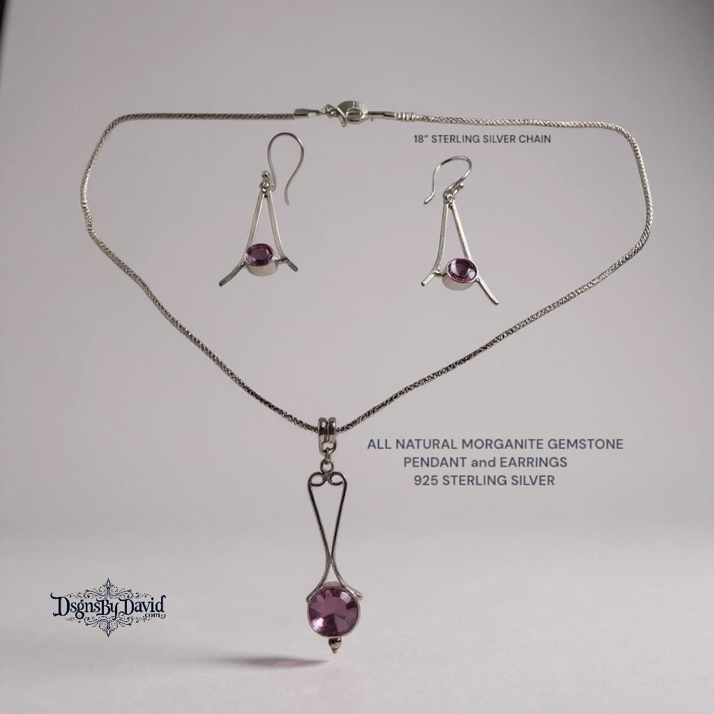 MORGANITE activates the HEART CHAKRA. This pendant is on a 18" Silver Chain. The pendant is approximately 2.15" (54.78mm) in height and .90" (23.00mm) in width. The Earrings are approximately 2" (52.25mm) in height and .50" (12.68mm) in width. This pendant and earring set are 925 Sterling Silver.