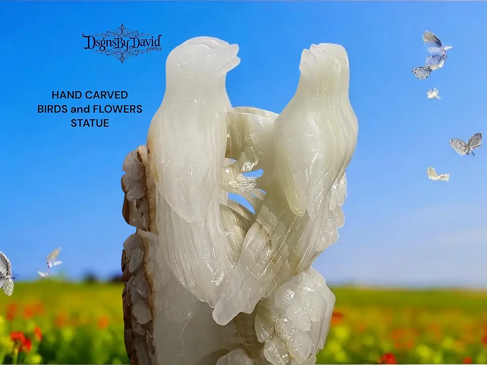 HAND CARVED JADE Birds and Flowers Statue
