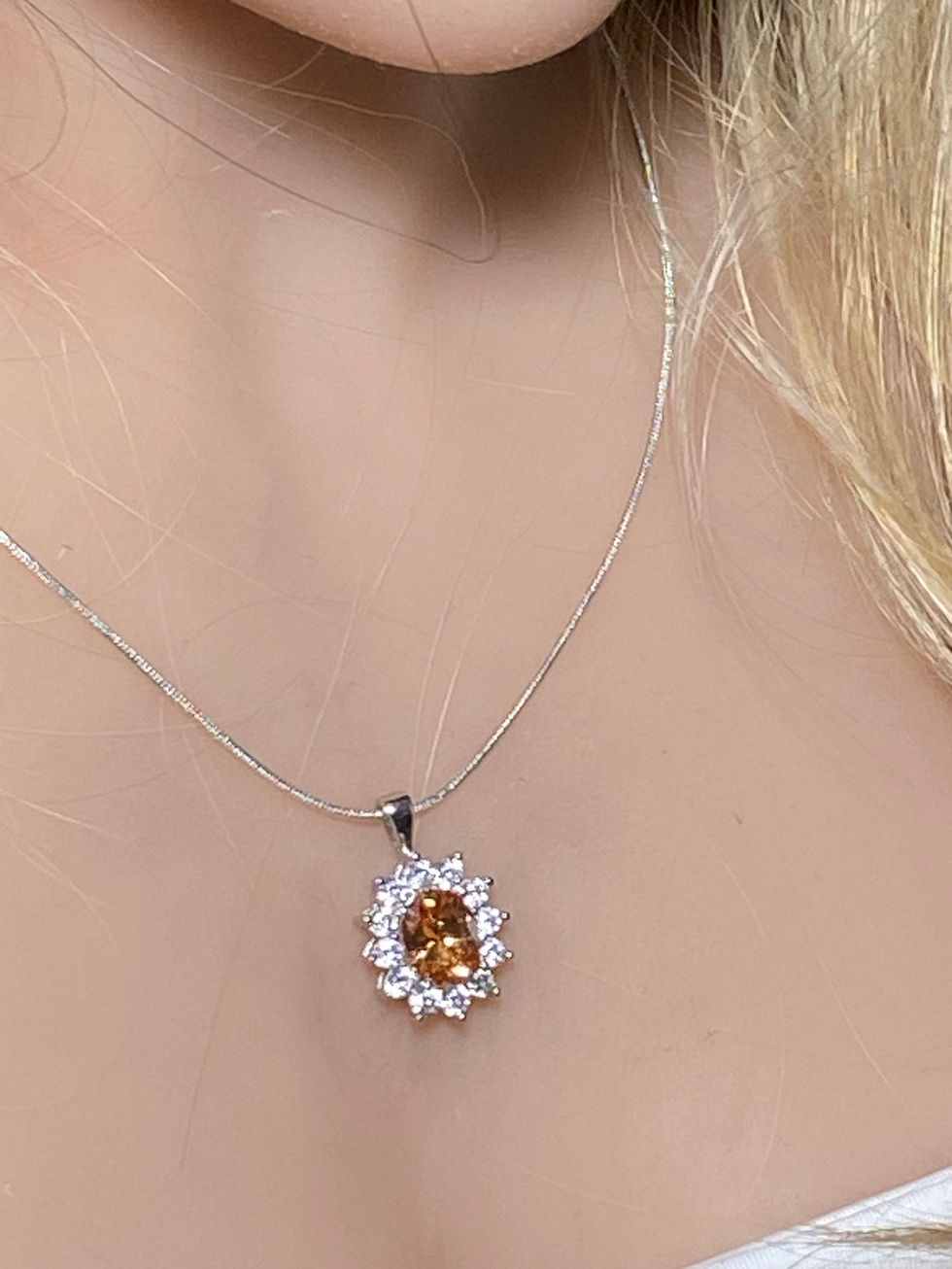 Padparadscha Sapphire Gemstones are associated with LOVE and COMMITMENT. This 4CT gemstone signifies PASSION, LOYALTY and a DEEP EMOTIONAL CONNECTION. The vibrant colors of Padparadscha Sapphires evoke a sense of enthusiasm and a zest for life, encouraging you to live life to the fullest. This stone is also connected to creativity and imagination allowing the wearer to think outside the box. Padparadscha Sapphire is a SACRAL CHAKRA Gemstone. This Gemstone is .92" (23.6mm) in height and .59" (15.1mm) in width. This Pendant is on a 18" Silver Chain. The Pendant base is Solid 925 Sterling Silver. White TOPAZ is considered to be an empathic stone that soothes, heals, recharges and re-centers the wearer. White Topaz is believed to promote truth and forgiveness. Topaz has been forever a symbol of prosperity, communication and clear thinking. The brilliant color of Topaz makes it a beautiful jewel to be worn in a necklace. CHAKRA NECKLACE. Topaz is associated with the CROWN, THIRD EYE, THROAT and SOLAR PLEXUS CHAKRAS. WHEN YOU WEAR HEALING CRYSTALS IN JEWELRY IT INVITES INSTANT HEALING AS THE VIBRATIONS OF THE STONE CAN GET DIRECTLY UNDER YOUR SKIN. We ship worldwide. You can check International Shipping prices below. 358
