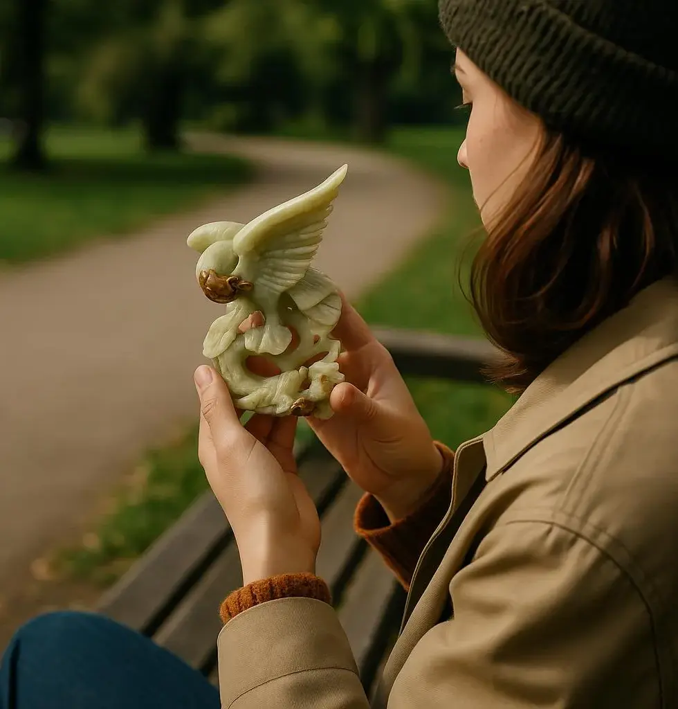 This is a Jade, Hand Carved, Eagle spotting a Fish Statue. This type of Jade is believed to have a CALMING and SOOTHING energy that can help reduce STRESS, ANXIETY and EMOTIONAL TURMOIL. Hand Carved in China this Jade is a precious gemstone that is a symbol of GOOD LUCK and FORTUNE. This type of Jade is prized for its BEAUTY, DURABILITY and CULTURAL SIGNIFIANCE. The rarity, durability and beauty of this Jade have made it a highly sought after gemstone.