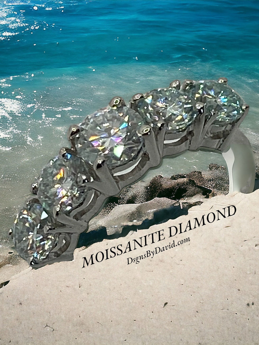 5 Stone 2.21 CT. Near White Moissanite Diamond Ring: This 5 stone Near White gemstone is full of FIRE, RAINBOW SPARKLE and perfect for someone who wants a quality DIAMOND RING at an affordable price. This Near White 5 stone Moissanite Diamond Ring has the brilliance fit for royalty. Moissanite Diamonds are strong and long lasting. These are Diamonds that can last throughout your lifetime and be passed down to future generations. Moissanite Diamonds are durable enough for everyday wear. Diamonds are believed to activate the CROWN CHAKRA. This 5 Stone Near White Moissanite Diamond Ring is stamped 925 Solid Sterling Silver. MOISSANITE DIAMONDS ARE REAL DIAMONDS. This Moissanite Diamond has been tested on a Presidium Gem Tester and does read as a Real Diamond. This ring is size 7 US. WHEN YOU WEAR HEALING CRYSTALS IN JEWELRY IT INVITES INSTANT HEALING AS THE VIBRATIONS OF THE STONE CAN GET DIRECTLY UNDER YOUR SKIN. We ship worldwide. You can check International Shipping prices below. 258