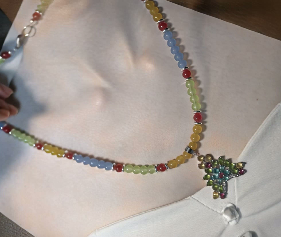 Discover the vibrant elegance of the multi-color natural gemstones in this meticulously crafted beaded necklace from Dsgnsbydavid. Each stone is carefully selected for its unique hues and natural beauty, reflecting the brand's commitment to quality and authenticity. Designed for those who appreciate refined craftsmanship and timeless style, this necklace effortlessly complements any outfit. Dsgnsbydavid continues to provide exceptional jewelry pieces that celebrate individuality and natural sophistication. Embrace a statement of color and grace with this exquisite beaded necklace.