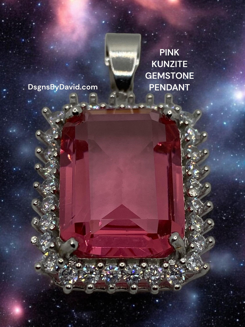 Kunzite is associated with the HEART CHAKRA. This a 6g GEMSTONE Pendant on a 18" Silver Chain. The pendant is 1.35" ( 34.3mm) in height and .75" (19.0mm) in width. This Kunzite Stone is surrounded by Cubic Zircon stones and is 925 Silver Filled. Cubic Zircon is associated with the CROWN CHAKRA.
