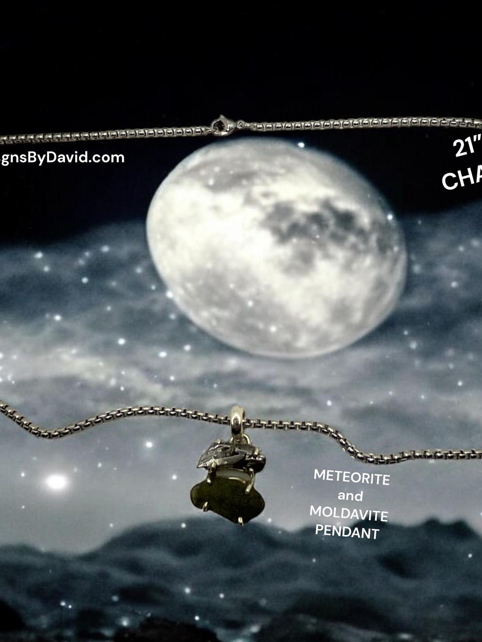 This is an EXQUISITE piece of Czech Moldavia Crystal paired with a Raw piece of a Meteorite. Moldavite was created by a Meteorite impacting the earth about 14 million years ago in the Czech Republic. The force of the Meteorite impacting the earth instantly melted surrounding soil and rock creating this Molten glass crystal. Once this crystal has been mined out sometime during the next 10 years there will be no more. Moldavite is believed to bring harmony in marital relationships as well as to bring luck to those who wear it as jewelry. It is said to release emotional blockages and to help heal from past trauma. This is a STUNNING piece of jewelry for both MALE and FEMALE alike. Moldavite influences all of your CHAKRAS, has a special connection to the HEART CHAKRA, and purifies the THIRD EYE and CROWN CHAKRAS.I have 4 of these available. Being a natural crystal and piece of meteorite no 2 are exactly alike. They are all similar in size and appearance. These pendants are on a 21" chain and about 1.10" (28.0mm) in height and .79" (20.2mm) in width. This is a 925 Sterling Silver Pendant. WHEN YOU WEAR HEALING CRYSTALS IN JEWELRY IT INVITES INSTANT HEALING AS THE VIBRATIONS OF THE STONE CAN GET DIRECTLY UNDER YOUR SKIN. We ship WorldWide. You can check the price for International Shipping Below. 433